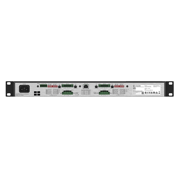 With a compact 1RU form factor requiring minimal rack space, the V600:4 is fully equipped with best-in-class features and innovative new Dynacord technologies to offer building owners an optimal combination of real professional performance and resource efficient power consumption, all at a very attractive price point.