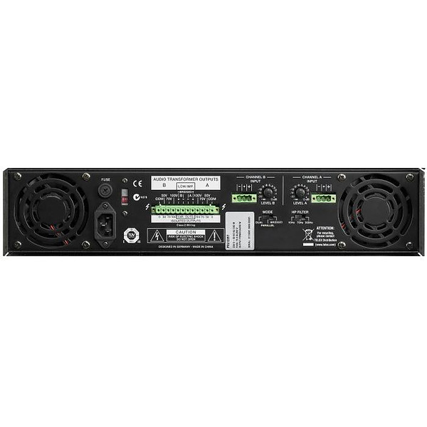 All PCL-Series power amps feature different hi-pass filters with switch selectable cut-off frequency to attenuate unwanted low-frequency signals. Infinitely variable low-noise high performance fans guarantee absolute thermal stability while keeping fan noise to a minimum. Direct “flow-thru” chassis design allows for a smooth flow of air from front-to-rear, which allows trouble-free operation even in smaller amp-racks. Compact high density power supply units with low-leakage toroidal transformers provide extensive headroom far above the listed power rating.