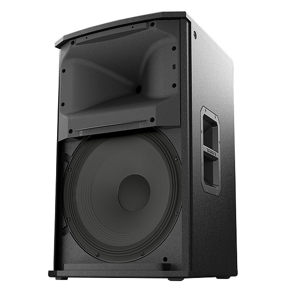 This transducer yields lower distortion, smooth response and high SPL. The high-efficiency DH3-B compression driver has a convex diaphragm driving a coherent phase device extending frequency response to 20 kHz. EV’s FIR-Drive technology utilized the latest FIR (Finite Impulse Response) filter technology to optimize transducer linearity and advanced limiter algorithms for independent peak and thermal transducer protection. The enclosure is constructed out of 18-mm, 13-ply birch plywood finished with EVCoat.