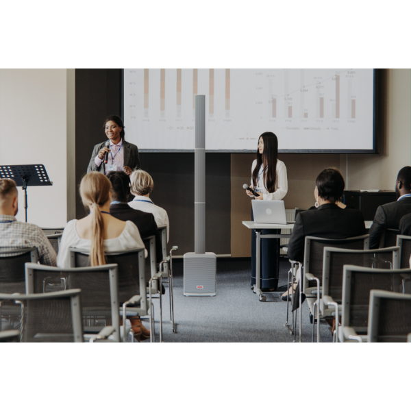 The Tensor-SOLO all-in-one column PA delivers a superior audio experience from an ultra portable system. The 8\ subwoofer and six 2.75\" drivers allow for crystal clear audio coverage for 100+ people. With its simple 4-piece ‘slot together’ design, the Tensor-SOLO can be set up swiftly and effortlessly. Microphones or line level devices such as keyboards can connect to the Tensor-SOLO simultaneously via the 4-channel mixer. Bluetooth enabled devices can also connect for wireless audio streaming and with integrated True Wireless Stereo technology (TWS), two Tensor-SOLO systems can be linked for stereo audio transmission wirelessly. The on-board DSP provides 4 EQ presets for different voicings as well as comprehensive audio protection to prevent the system being overloaded and damaged. Super-lightweight – weighing just 13kg, 29lbs, the Tensor-SOLO is the ultimate wireless audio solution.