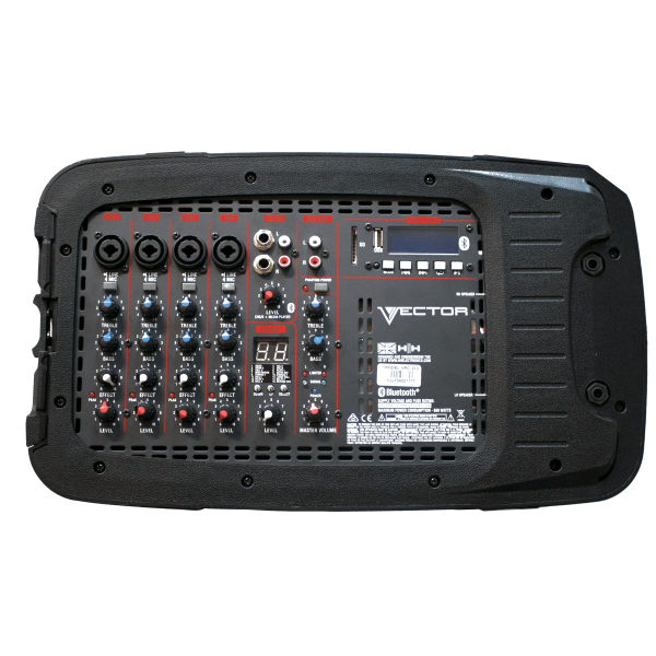 The VRC-210 portable PA system offers an ideal solution for bands, conference, DJ, fitness, education, and more. With its lightweight 10” enclosures, the VRC-210 allows for easy transportation and quick and simple setup. The integrated 6 channel mixer enables multiple instruments and microphones to be connected and mixed simultaneously. The 16 digital effects section ensures that your vocals or instruments have depth to their sound. The on-board media player includes USB, SD card, and Bluetooth inputs, ensuring that music or backing tracks can be easily played through the system. The VRC-210 offers many solutions within one affordable, lightweight, and portable package.