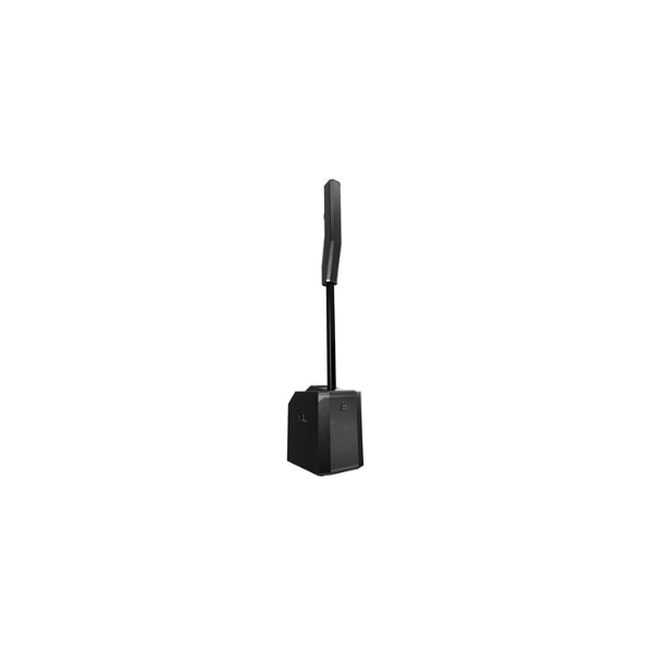 With a sleek black finish the EVOLVE70B is constructed with a plywood subwoofer enclosure and a composite column for durability and portability Its 2000W amplifier with 1000W per channel power rating ensures strong and consistent performance across various applications The system supports up to 300-500 attendees or more and includes thoughtful features like a twist-lock power input a sturdy aluminum pole and optional accessories like a dolly and slip cover for easy transport and setup