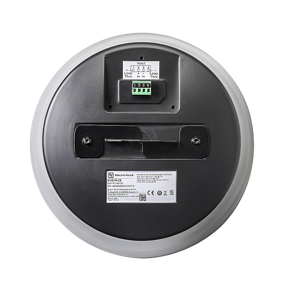 The Electro-Voice EVID P6.2 loudspeaker system is a complete two way pendant loudspeaker. The package consists of a bezel assembly, magnetic grille, rear enclosure, 6.5-inch coax two way loudspeaker and internal line matching transformer. The loudspeaker features a titanium dome tweeter.