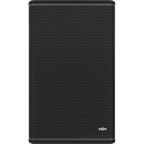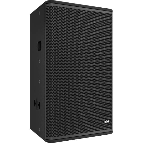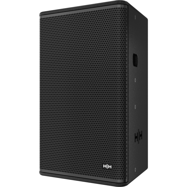 The enclosure is constructed from durable plywood with a rugged black paint finish, designed to resist wear in demanding environments. A hexagonal mesh steel grille with acoustic foam backing ensures protection and sound transparency. Installation flexibility is provided through 14 M8 mounting points and a dual-angle pole mount, while two ergonomic side handles support easy portability. With 400W continuous power handling and 8Ω impedance, the PS12 is a reliable, high-performance speaker choice for professional audio environments.