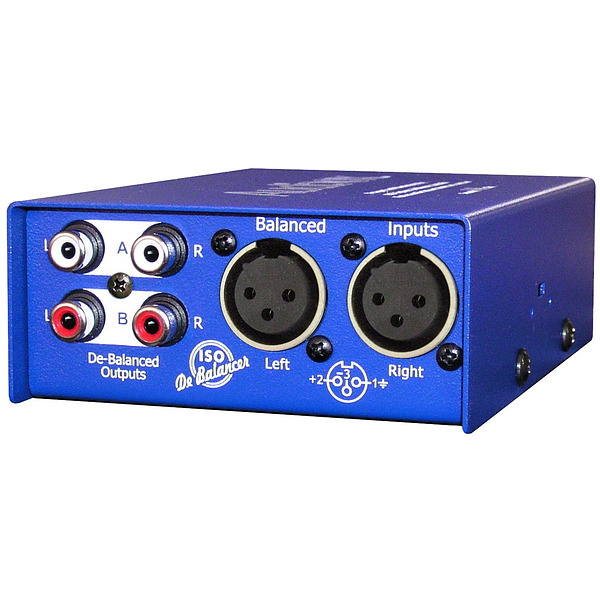 A Unique de-balancing box, the De-Balancer will convert stereo Balanced Low Impedance signals to Unbalanced Low Impedance signals, to allow leads to run balanced from A to B and then be de-balanced for connecting to a high impedance/unbalanced input at the other end.