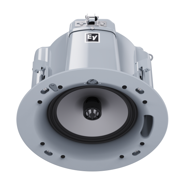 The EVID-EC8.2 is a high-performance 8-inch two-way coaxial ceiling speaker designed for exceptional audio clarity in commercial and professional installations. With a sleek bezel-less profile and front-mounted wattage tap adjustment, it ensures a clean aesthetic and simple configuration. Its robust steel rear enclosure and UL 1480A and 2043 safety certifications make it suitable for use in air-handling ceiling spaces. The wide 90° conical coverage pattern and high SPL output provide clear and even sound distribution in medium to large rooms.