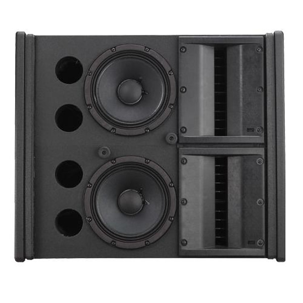 Two vertical coverage angles, 6° and 20°, can be combined to create line arrays optimized for spaces ranging from 12m to greater than 60m deep. Two horizontal coverage angles, 90° and 120°, provide the perfect match for any width. Each module consists of two elements, each 2-way element containing an 8” woofer and two compression drivers mounted on a hydra/waveguide combination.