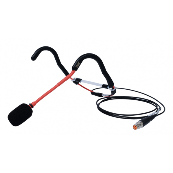 The EMRTRS is a red “E for Exercise” EMic headset microphone tailored for fitness instructors, offering reliable performance in light-to-medium studio use (rated up to 20 classes per week with a 12-month warranty). It features a noise‑cancelling waterproof capsule, a sealed and reinforced frame with adjustable headband, durable steel cable, and a sweat‑protected connector—perfect for various exercise environments including yoga, circuits, boxing, and aqua fitness.