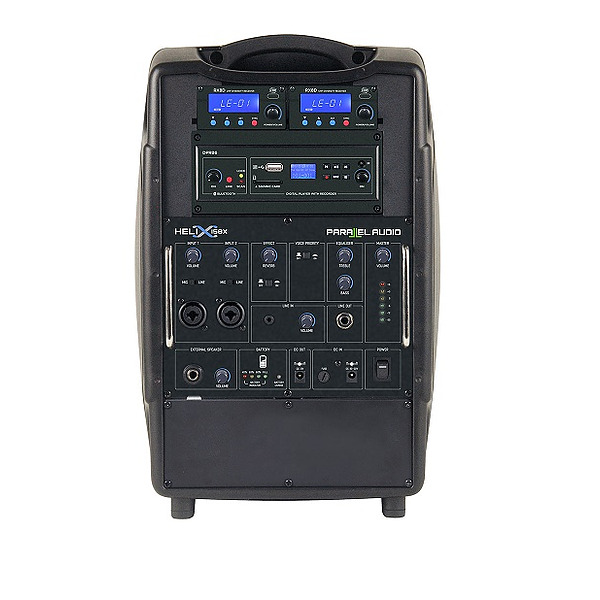 The Helix comes fitted with a 2 x UHF wireless receiver and Bluetooth/SD/USB player with recorder.
