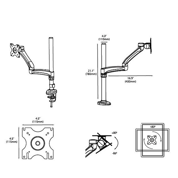 With 17 inches of reach, the DM1000’s articulating arm allows you to easily tilt, pan and swivel your monitor into the most optimal viewing position, and can be easily elevated to ensure proper line of sight.