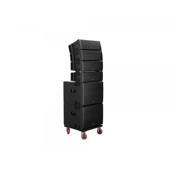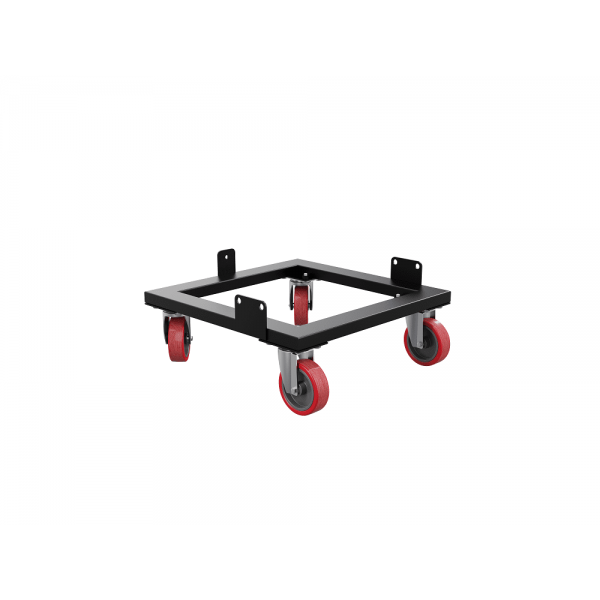 The TNA-DF1 solid steel dolly frame attaches securely to the TNS-1200s passive subwoofer to transform the TNA system into a fully portable line array.
