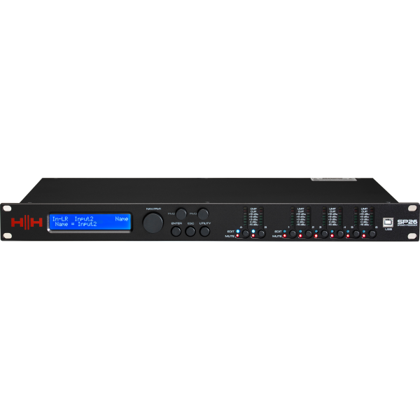 The SP26 loudspeaker processor is the perfect counterpart to any HH speaker system, suitable in an array of applications, such as live sound, indoor/outdoor events, public address, theatrical performance, and touring. It also comes with expertly created audio pre-sets for use with the TNA line array system, for easy setup straight out of the box.