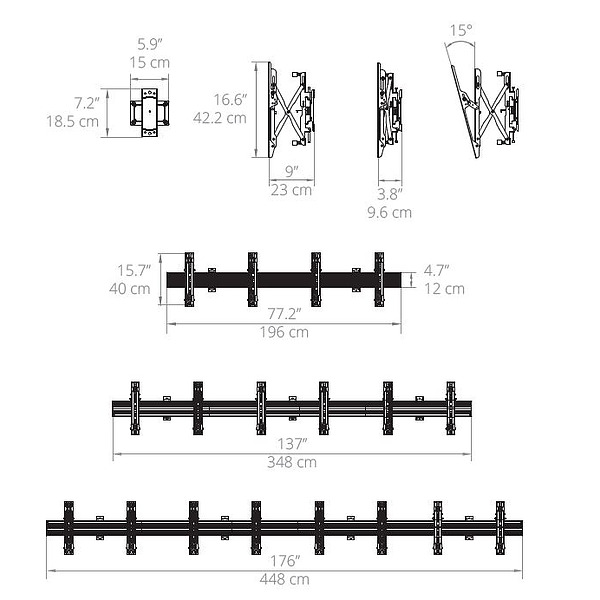 The MB Series wall mount system offers retailers a flexible, all in one solution for displaying menu boards and other digital signage. Its modular rails allow two to four screens to be placed adjacent to one another in portrait or landscape orientation, while precision leveling screws ensure perfect alignment.