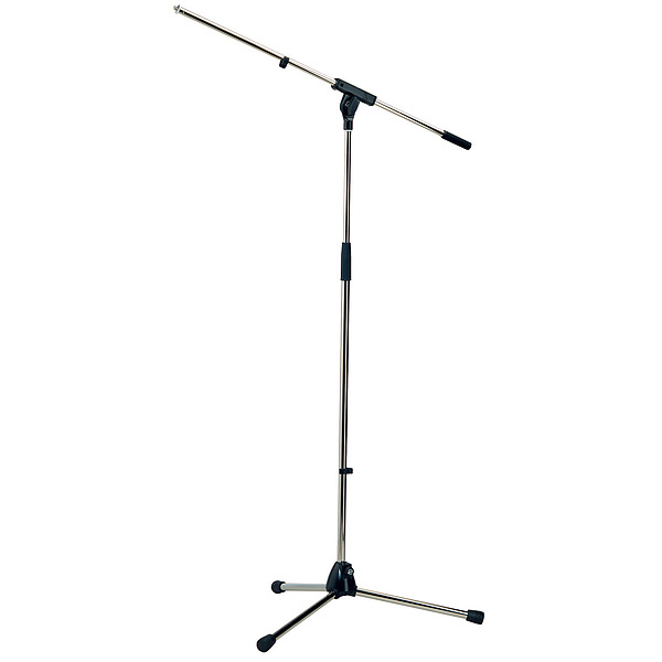 The 210/6 microphone stand with boom is a two piece telescoping shaft with long folding legs, and special height adjustment mechanisms.