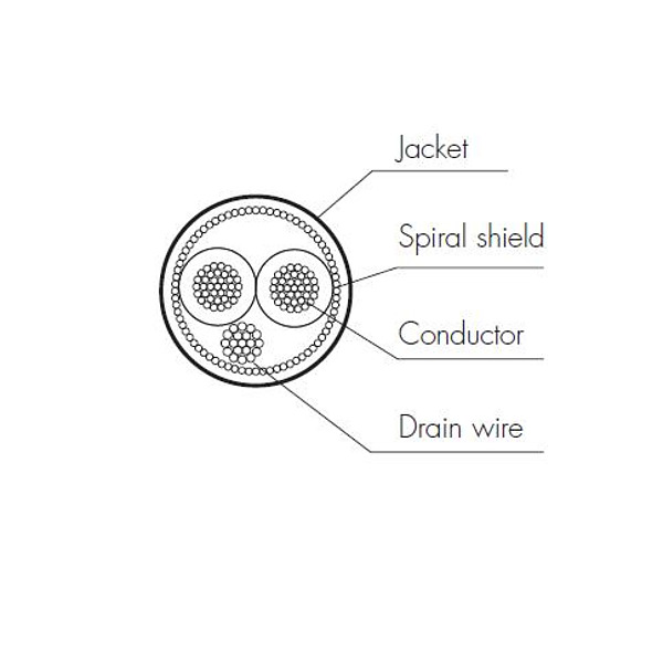 consists of two insulated twisted conductors and drain wire enclosed within a