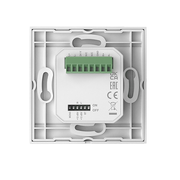 The WP220 is a remote universal wall panel with Bluetooth receiver input that can be used in combination with various AUDAC hardware (ARES5A, MTX series, AMP523 and more). It was never easier connecting your Bluetooth enabled device with your audio installation using this wall plate. It will enable you to transfer high quality audio over long distances between the wall panel and the loudspeaker, by just using inexpensive twisted pair CAT5e or better cabling.