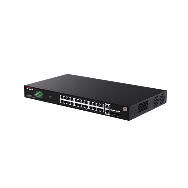 The ICMG2228P-24-410W is a high-performance 28-port PoE switch designed to deliver advanced network capabilities for businesses. With 24 PoE+ ports and a total power budget of 370W, it supports power-intensive devices like IP cameras, access points, and IP phones. This switch offers a robust 56Gbps switching capacity and is equipped with 2 Ethernet and 2 SFP optical ports for flexible uplink options.
