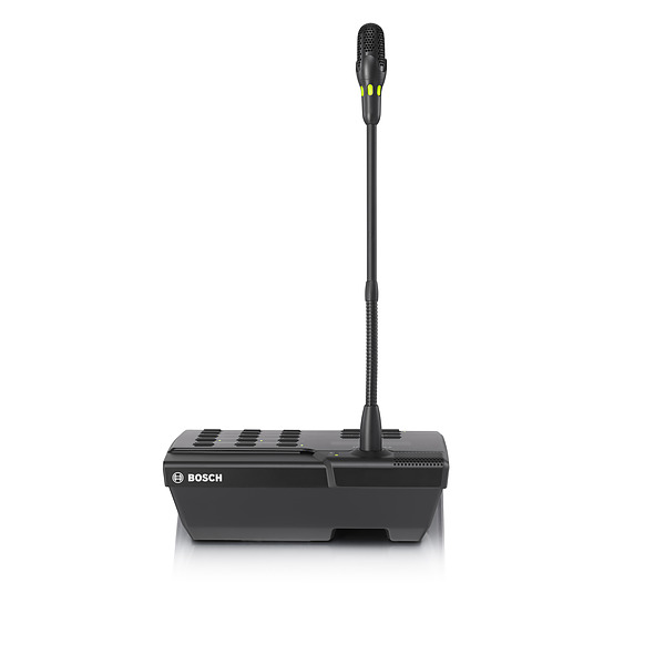 The PVA-15CST is a call station for the PAVIRO system. As standard, the call station has a gooseneck microphone with pop shield and permanent monitoring, a total of 20 buttons, an illuminated LC display, and an integrated loudspeaker. The call station can be modified to suit the user’s requirements by connecting up to five PVA-20CSE call station extensions, each with 20 customizable selection buttons.