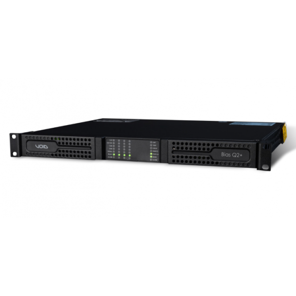 The Void Acoustics Bias Q2+ is a high-performance 4-channel amplifier delivering 1200W per channel at 8Ω, with advanced DSP and AES67 networking capabilities. Designed for versatility, it supports both low-impedance (from 2Ω) and 70V/100V distributed line systems, making it ideal for a wide range of applications including clubs, gyms, houses of worship, and corporate AV installations. The amplifier features Smart Rails Management (SRM) technology for optimized power efficiency and reduced thermal output, and is controlled via ArmoníaPlus software, offering comprehensive DSP tools such as EQ, delay, and FIR filtering.