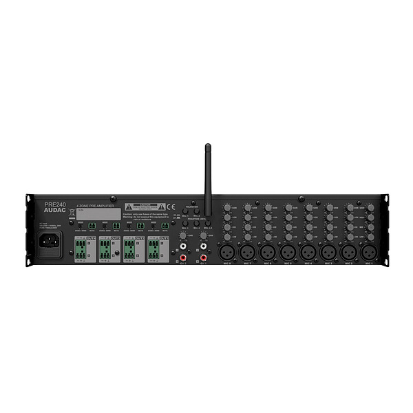The PRE240 series preamplifiers are solutions for applications where a large number (up to 8) of microphones (or other mono balanced audio inputs) need to be mixed to four output zones. The multifunctional stereo design with a total of 10 inputs allows connection for any type of audio source such as microphones, bluetooth devices or line level audio sources.