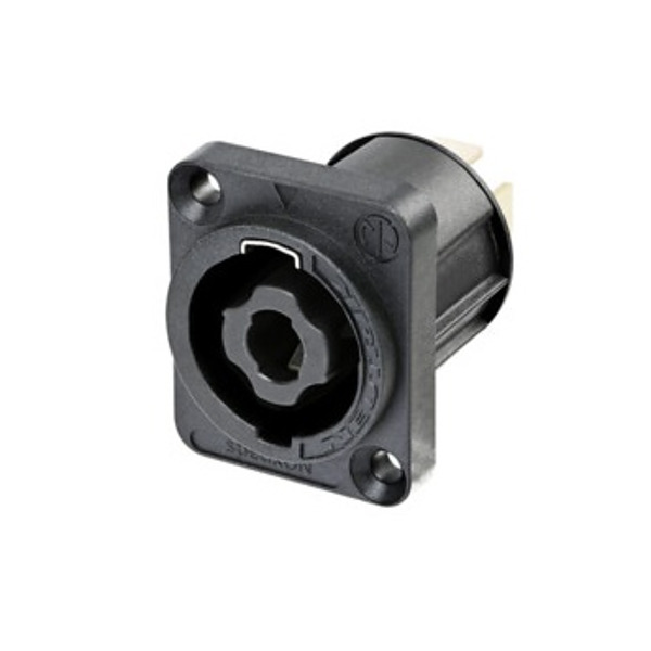 The speakON panel mount connectors are the standard chassis connectors for loudspeaker / amplifier interconnections. They feature a unique metal locking system, making contact only once fully locked. The speakON receptacles are robust, versatile and easy to terminate.