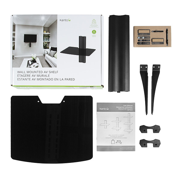 Each unit features a tempered glass shelf that is height adjustable and can support up to 9kg. A powder coated aluminum cover is also included to hide your cables, while endcaps ensure a clean and refined appearance. Choose between one, two and three-shelf models to accommodate your needs.