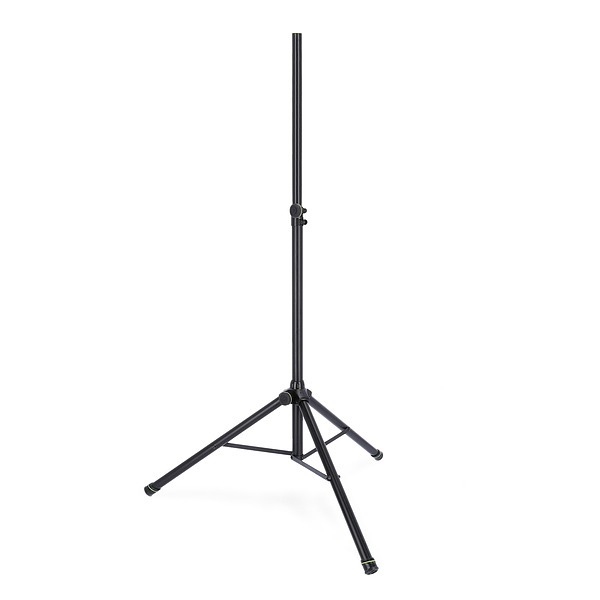 The SP 5211 GS B is a classic tripod speaker stand made of strong but lightweight aluminium tubing. A gas spring is installed inside the stand, which lifts all conventional loudspeakers weighing up to 18 kg. All you need to do is loosen the adjustment screw and watch your speakers or spotlights rise - up to a height of 194 cm.
