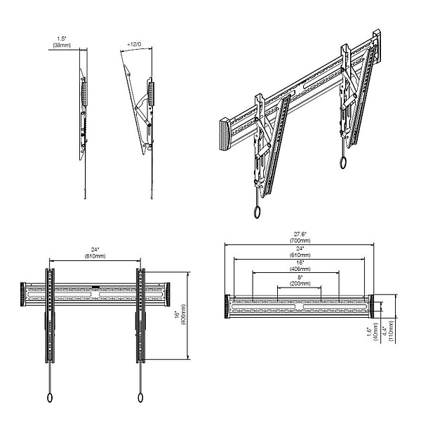 The KT3260 is a tilting TV wall mount wide enough to fit even custom 24” stud centers. While most construction uses 16” stud centers, there are many applications where 24” centers are needed and the KT3260 wall plate is wide enough to fit both. With its low profile design, range of VESA patterns and flexible tilting mechanism, this mount is a great fit for TVs between 32” and 60”. It’s also built with adjustable quick release cords making it easy to remove your TV from the wall and access cables.