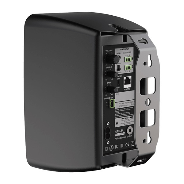 A specially designed bracket system allows close to wall installation of the speakers, while the recessed bracket structure guarantees an optimal cosmetic outlook of the system. The ARES5A can be mounted both horizontally as vertically with an inclination up to 45° on both sides, enabling to position the loudspeaker in the right direction. Due to the fact that the bracket itself consists of 2 45° corners, installation in corners or even ceiling can easily be achieved. The optional MBK455 angled mounting bracket set allows for an extra inclination of 90° when needed.