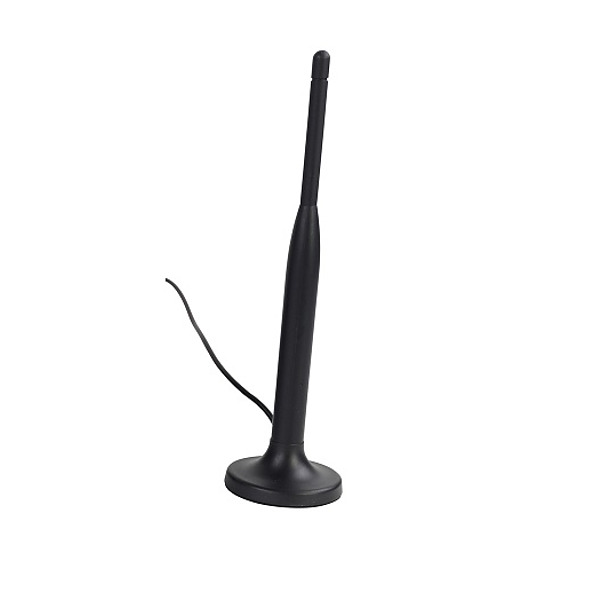 Remote antenna with a magnetic base to put on top of a metal rack instead of inside it.